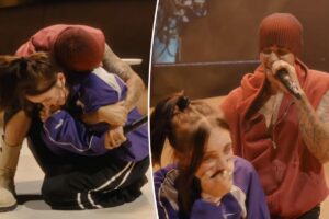 She’s one less lonely girl. Justin Bieber serenaded superfan Billie Eilish during his Coachella 2026 weekend two performance in Indio, California. Per a video shared online, the “Birds of a Feather” singer crawled up the stage and sat on a…