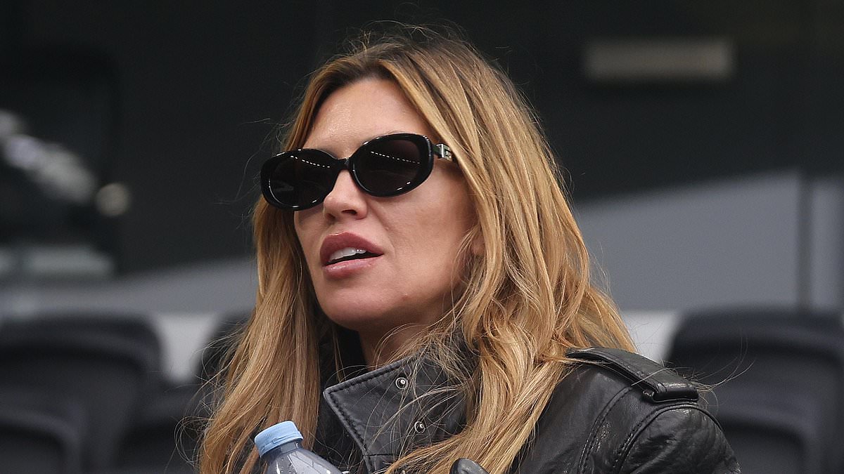 Abbey Clancy cut a casual figure as she watched Fulham take on Southampton in the FA Cup fifth round at Craven Cottage Stadium in London on Sunday