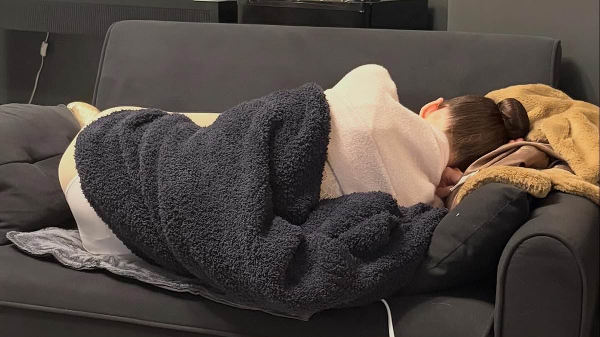 He accompanied his message with a variety of photos, among them an image of Nicola napping on a sofa between scenes