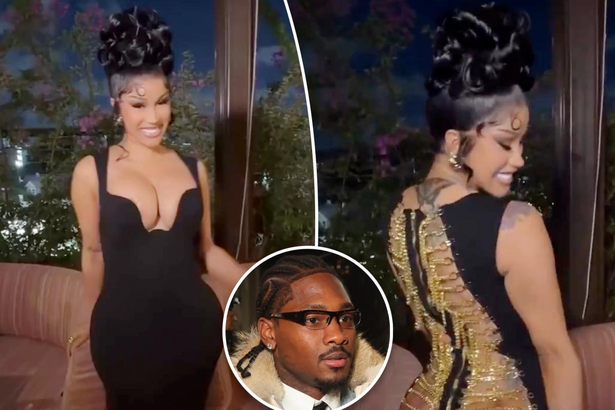 In a video shared on social media Friday night, Cardi showed off her full look, flaunting her curvy figure in the mid-length ensemble.