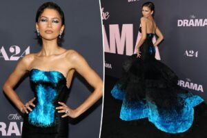 And the bride wore something blue. Zendaya arrived at the New York City premiere of “The Drama” on Thursday night…