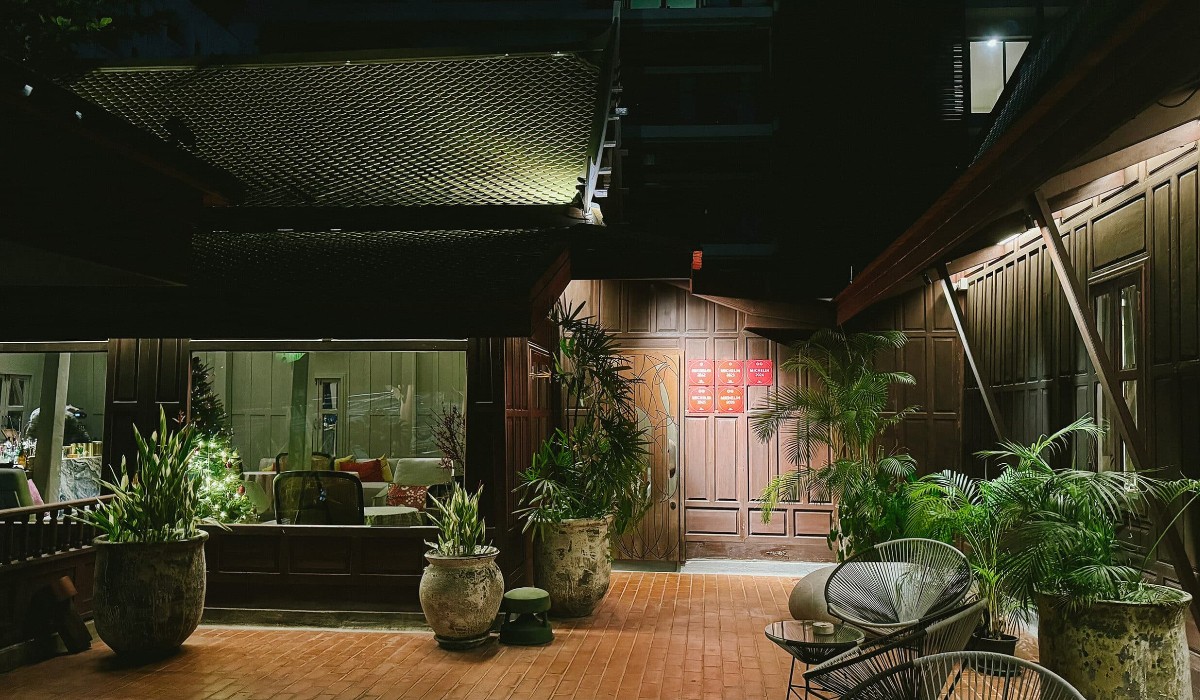 From there, we were brought downstairs to the dining area and learned that the house had originally been relocated from Ayutthaya and rebuilt on site. That detail shifted how we saw the building. The structure carries its history quietly, while contemporary design elements layer into it without overpowering the original architecture.