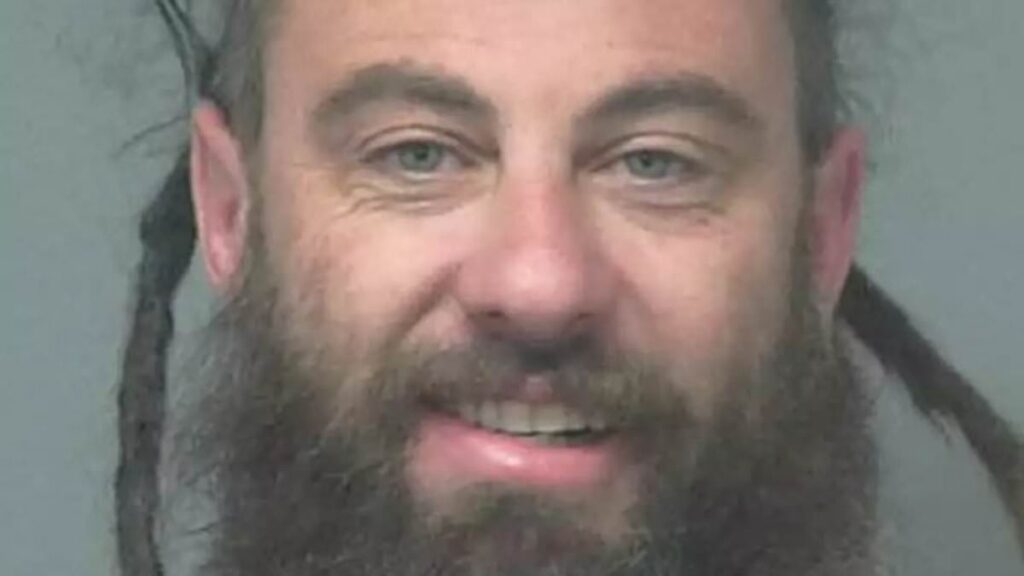 Discovery Channel star Chad Ollinger, 41, told police he had a ‘supernatural ability’ that told him his cellmate was a pedophile before he allegedly strangled him to death on December 26, according to his LVMPD arrest report obtained by local Fox affiliate KVVU on Monday; he’s pictured in a mugshot from November 2024