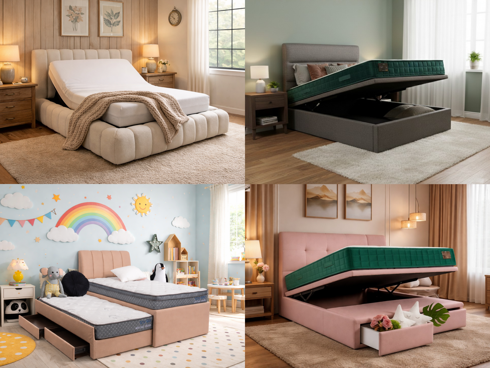 What’s more, choose from front or side-lift mechanisms and additional drawers to accommodate your storage needs and room layouts.