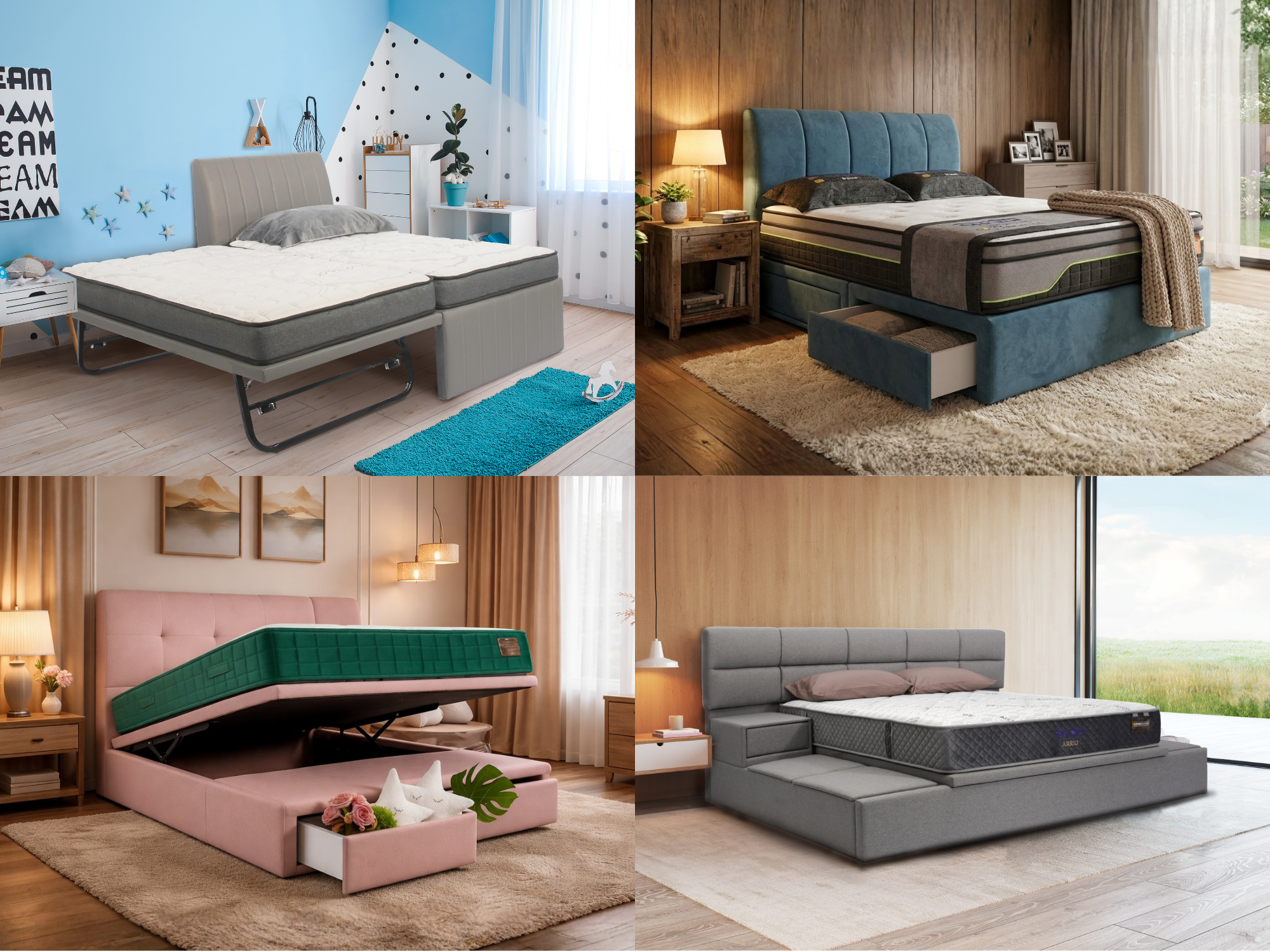 The bedframes can also be designed for multifunctional purposes, such as the pull-out bed, which lets you tuck away an extra mattress when not in use. It’s ideal for kids’ rooms, guest rooms, or even for adult sibling sleepovers – perfect for family reunions this CNY season. And when you need more space to sleep on, the transformable design converts a single into a queen-sized setup with just a pull.