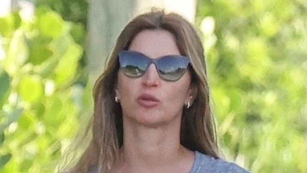 Bundchen donned a long-sleeved, gray shirt as well as a pair of shorts and comfy flip-flops.