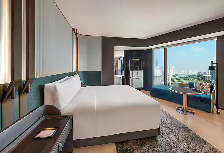 We stayed in a king one-bedroom suite connected to a premium corner king room, both with river views.