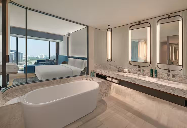 The bedroom itself was equally generous, paired with a large bathroom with a bathtub, shower, and separate spaces, and a small pantry area that made casual snacking easy.