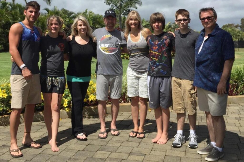 “Here’s another family photo from Kauai. This time with our daughter Dina, her husband Damien and their boys Dante & Eli,” Norris captioned the post.