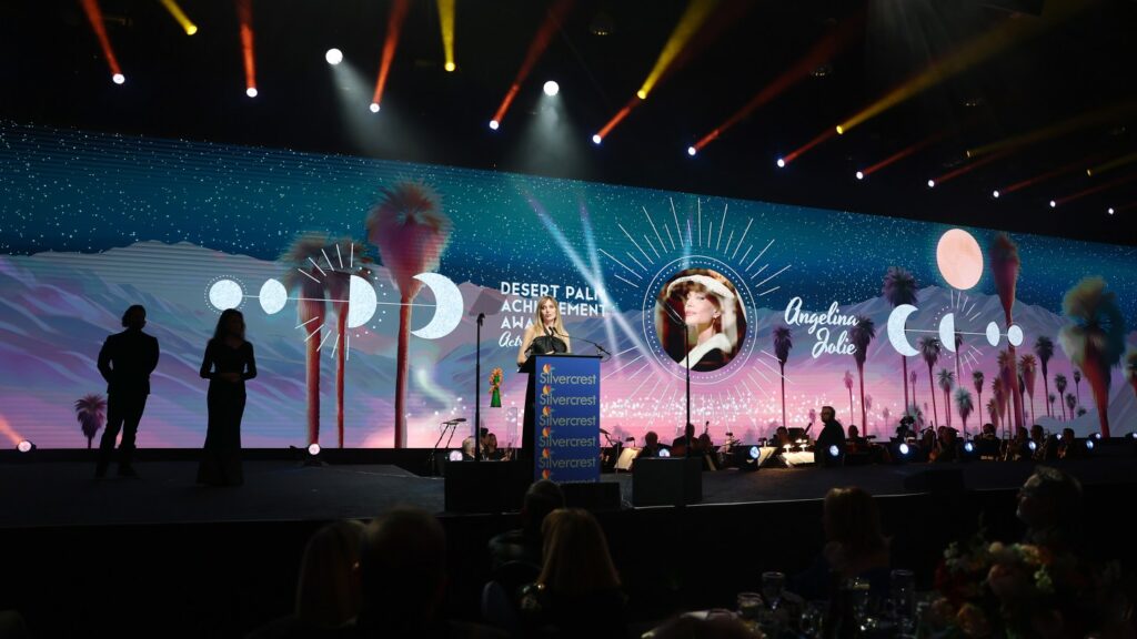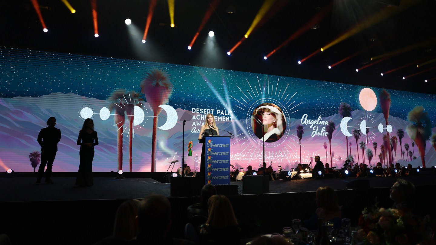 A centerpiece of the fest is its Awards Gala, a black-tie dinner ceremony at which a dozen honors are bestowed upon high-profile Oscar contenders (often by other high-profile Oscar contenders), who tend to accept with scripted stump-speeches featuring talking-points aimed at the many Academy members spread amongst the locals at the 212 tables seating 2,400 guests in the cavernous Palm Springs Convention Center.