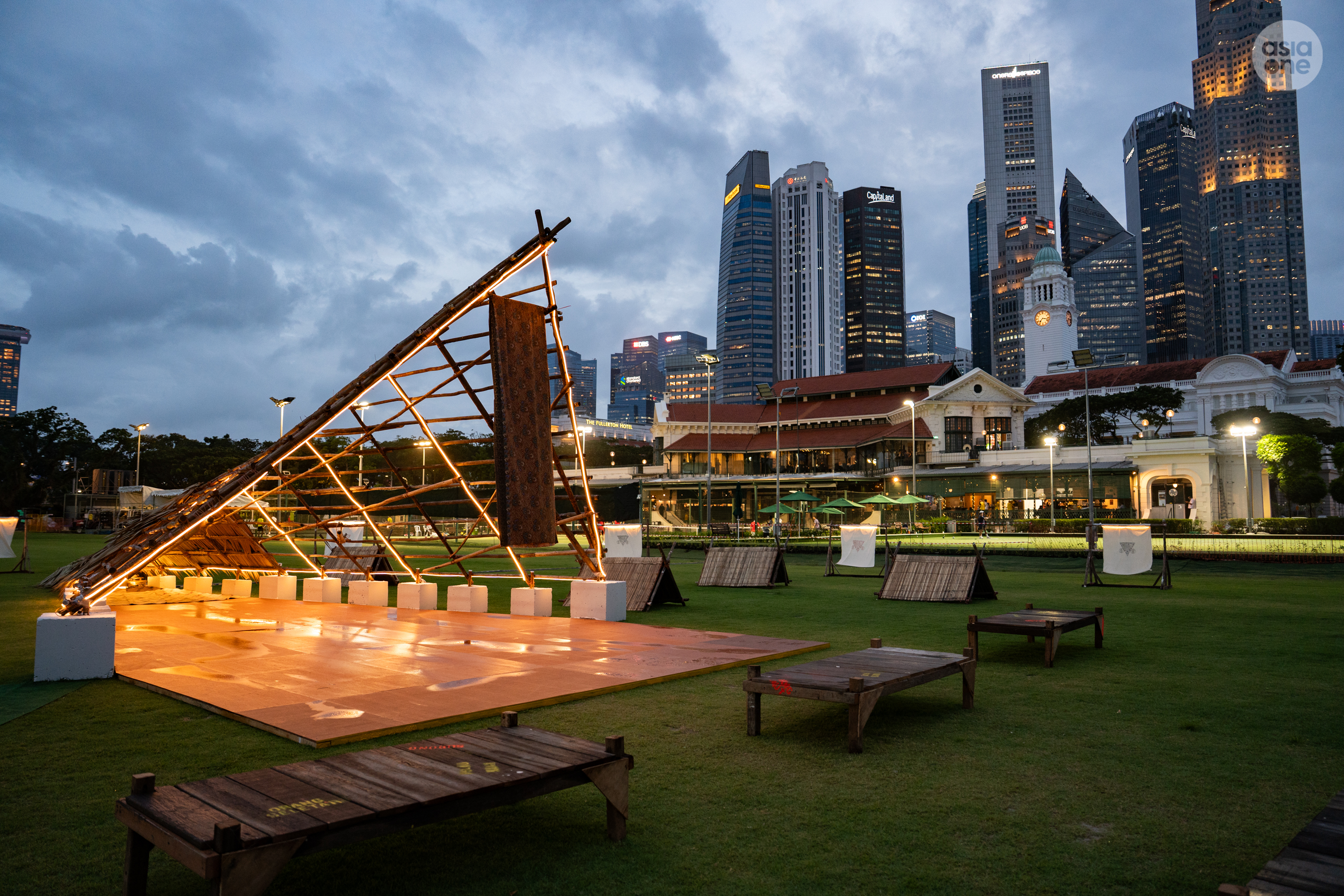Also located at the Padang is one part of Singaporean artist Firdaus Sani’s Rumah Laut (Coastal Home), which represents the legacy, displacement, and resilience of Singapore’s indigenous Orang Laut, or coastal communities.
