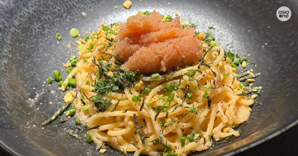 A generous dollop of mentaiko tops the pasta.