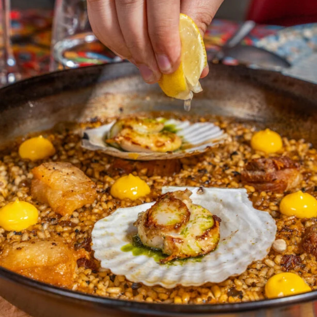There’s a clear emphasis on bold, rustic flavours, guided by Valencian chef Javier Vicente Rejas. Come evening, the space shifts easily into drinks, with sangria, spritzes, and a tight list of Spanish wines anchoring the experience.
