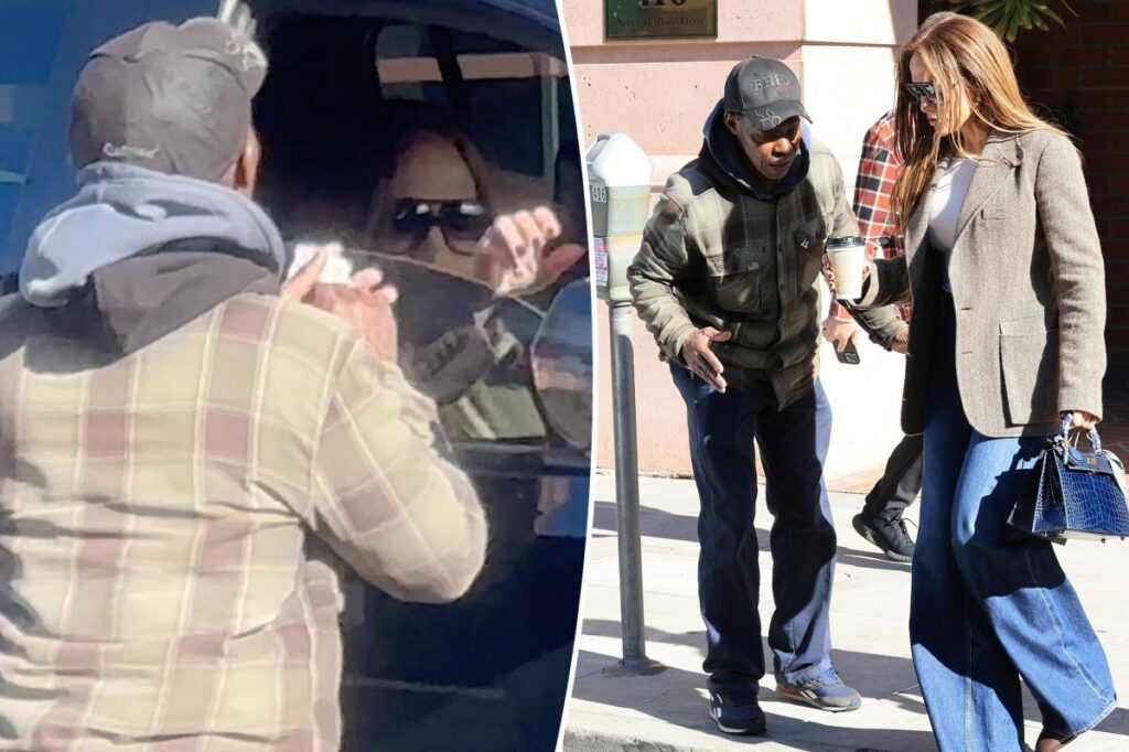The “On the Floor” singer, 56, then reached into her rare blue handbag, put her window down and handed the man some cash.
