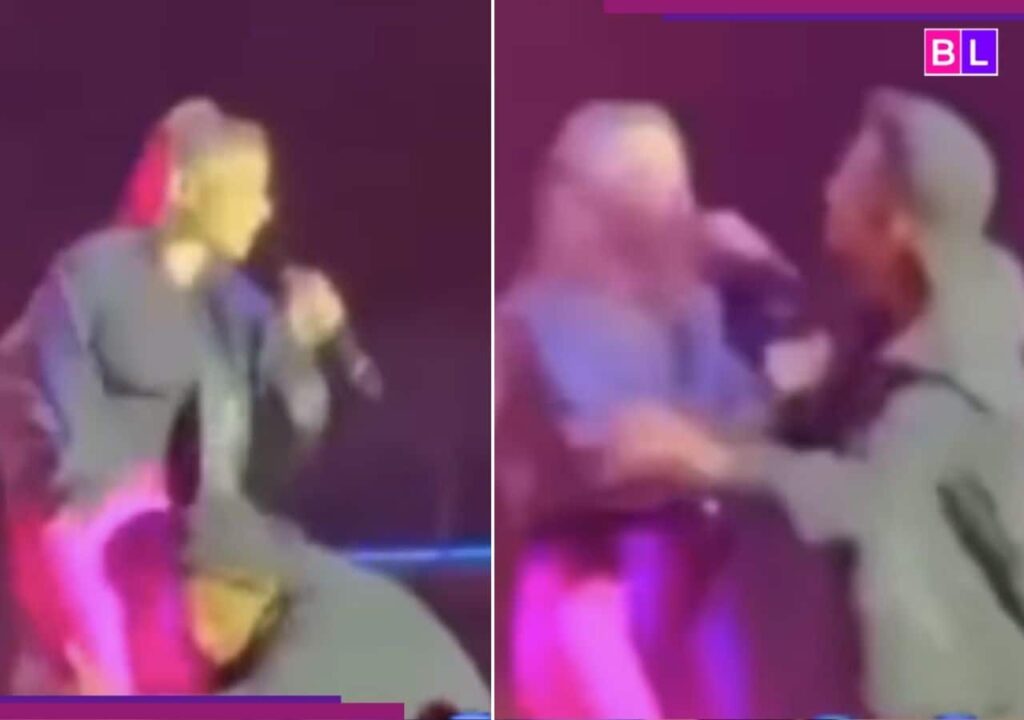 During the Megong Festival in Meghalaya, a shocking incident occurred involving Bollywood’s famous singer Kanika Kapoor. While she was performing on stage, an unknown man suddenly came running and tried to grab her. This incident occurred in front of the audience, causing chaos. Kanika was terrified by the incident, but she maintained her composure. Within seconds, security personnel arrived at the scene, apprehended the man, and escorted him off the stage. A video of the incident is rapidly going viral on social media.