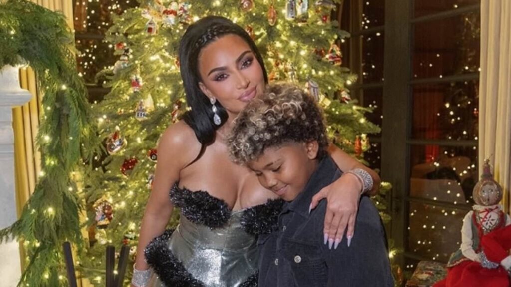 Kardashian also welcomed eight-year-old daughter Chicago and six-year-old son Psalm during her six-year marriage to third ex-husband Kanye ‘Ye’ West, which ended in 2021 (pictured December 25)