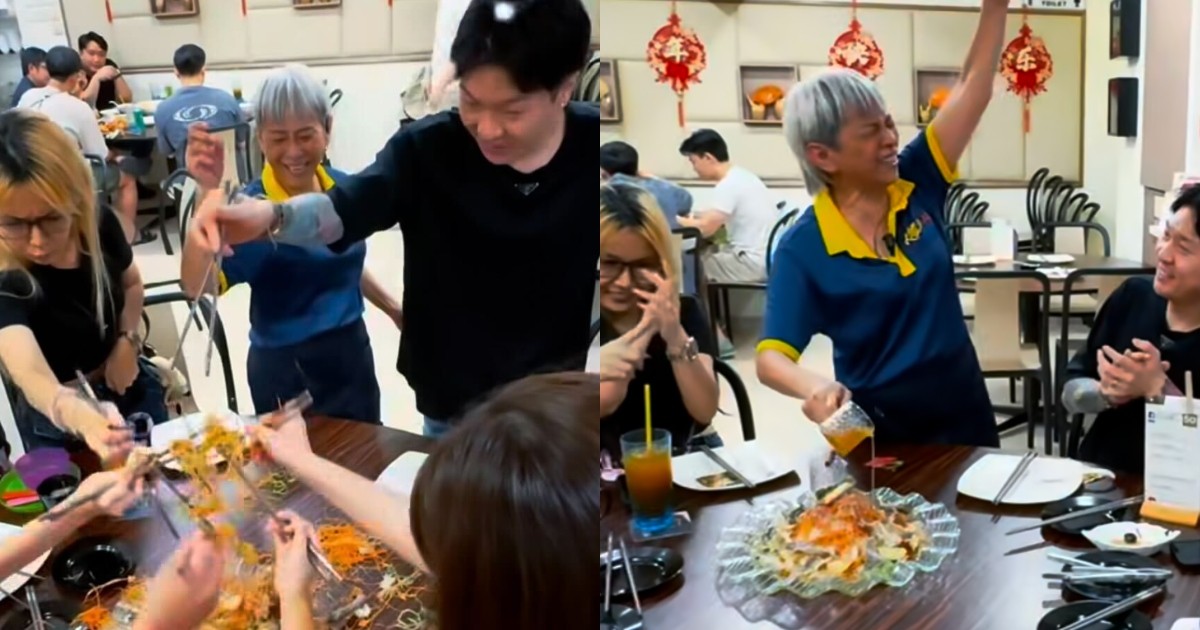 While auspicious sayings are no strangers to lohei sessions, one employee at a restaurant in Toa Payoh has been drawing attention for her performance during yusheng table service.