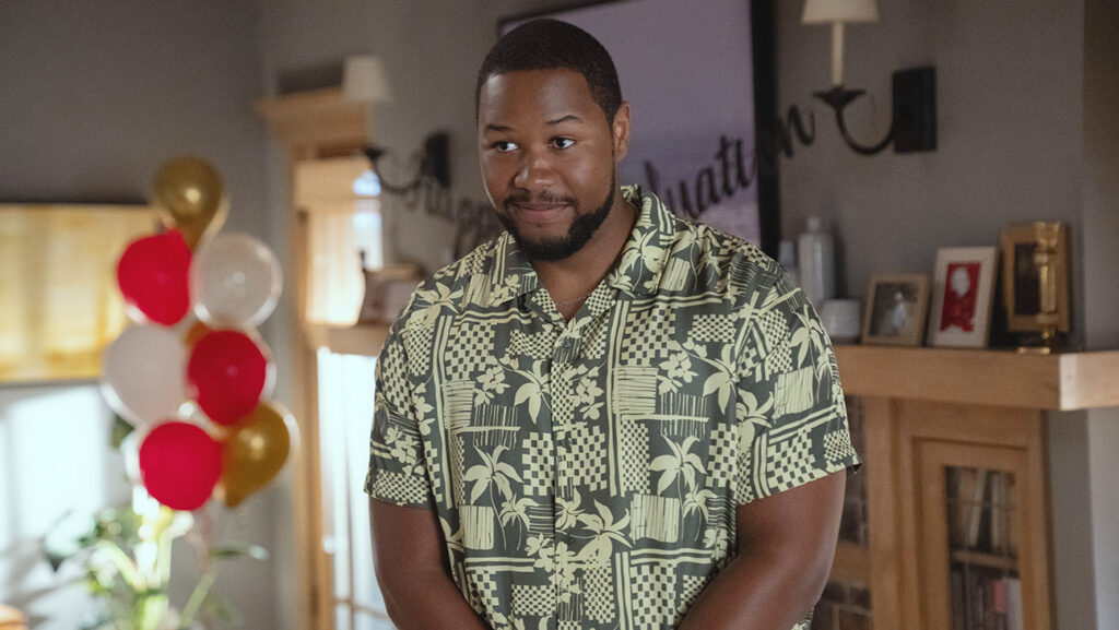 On Abbott, Tennie jokes that the biggest thing he has to prepare for is staying locked in during the scenes. “Sometimes just reading those scripts will split my sides. I just try to be a professional at work and not break,” he says, noting that comedy is oftentimes the harder genre to pull off.