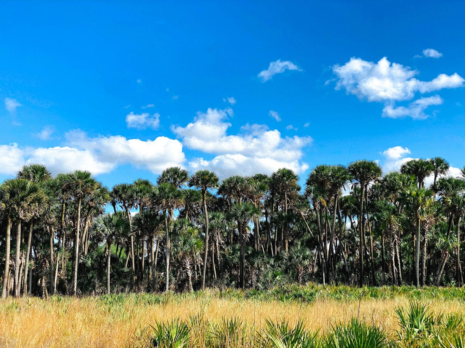 Guests can enjoy the park’s prairies and the Everglades’ headwaters, which are home to native wildlife. It’s a popular spot for birding, with caracaras and grasshopper sparrows inhabiting the area.