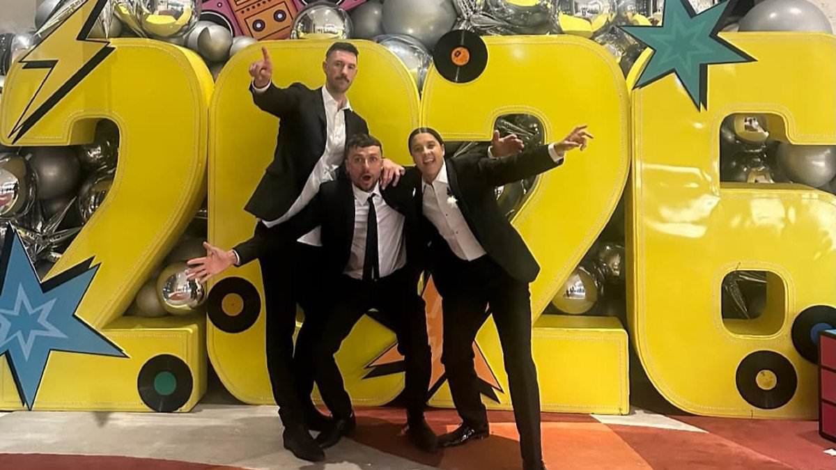 In a post shared to Instagram Stories on New Year’s Day, the Matildas player posed in her wedding tuxedo in front of a huge celebratory 2026 display.