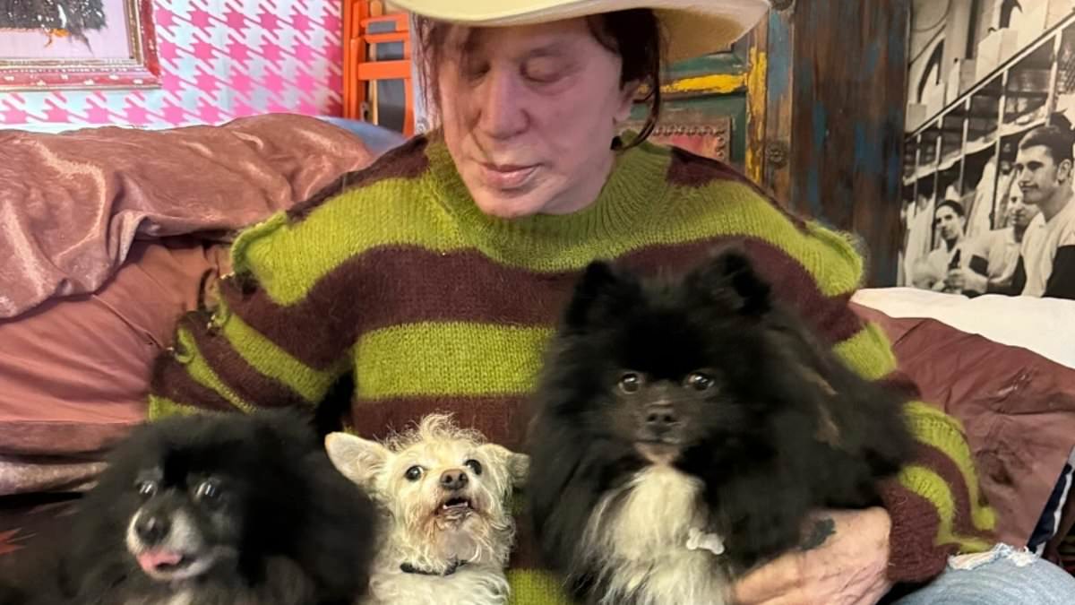 Mickey Rourke is pictured with his dogs Egor, Ivan and Lucky in 2023; Ivan, one of the black and white canines, now has a heart condition requiring a $10,000 surgery