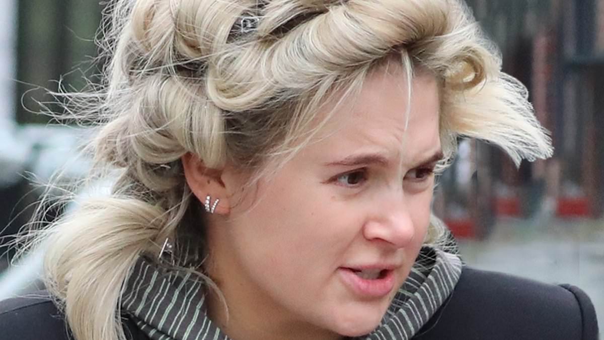 She layered the ensemble under a long black coat and looked harried as she made her way through the streets while running errands.