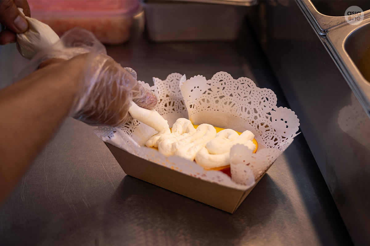 A fresh piece of mango forms the base of the dessert, which is then slathered with cream cheese piped on top, and finished with a sprinkling of popping boba and juicy pomelo. This tropical dessert doesn’t just look good for the ‘Gram, it is a much needed palate cleanser you need to end your food hunt with.