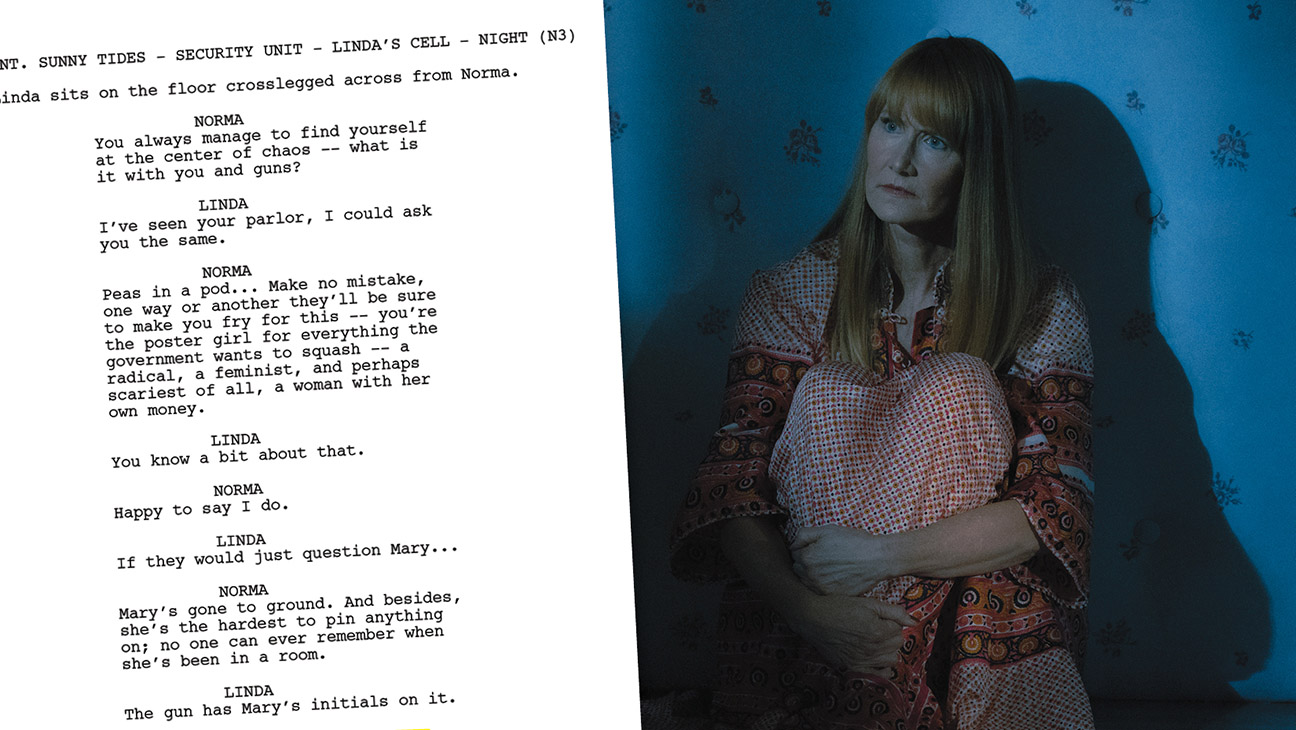 Comparing how this scene plays out to what was written on the page highlights that so much of what the actors do was never written into the character or the script, Sylvia says. “There’s a beautiful moment later in the scene where, for a moment, Linda considers [Norma’s proposition]. And we didn’t put that in the dialogue, that at the last moment, Linda almost goes along with it,” Sylvia says. “But I remember that when we were doing this scene, I went up to Laura, and she’s one of our greatest living actresses, and I said, ‘Why don’t we put in this moment at the end?’ And when you watch the scene, you’ll see for a moment she realizes that Norma is right, that she is going to fry for this. And you just watch it in Laura’s eyes. There’s a passing moment where she goes, ‘Oh, maybe, maybe I will.’ ”