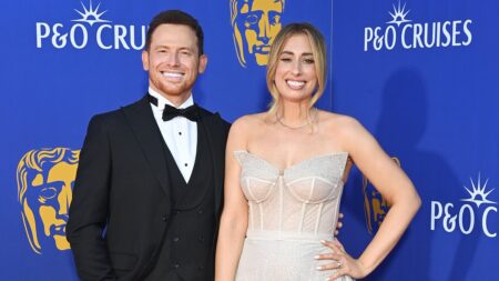 The Love Island star also shared a glimpse into the gender reveal for her unborn child, with a shot of a number of cream heart-shaped balloons filling their living room and an envelope that read ‘Baby’ on the front.