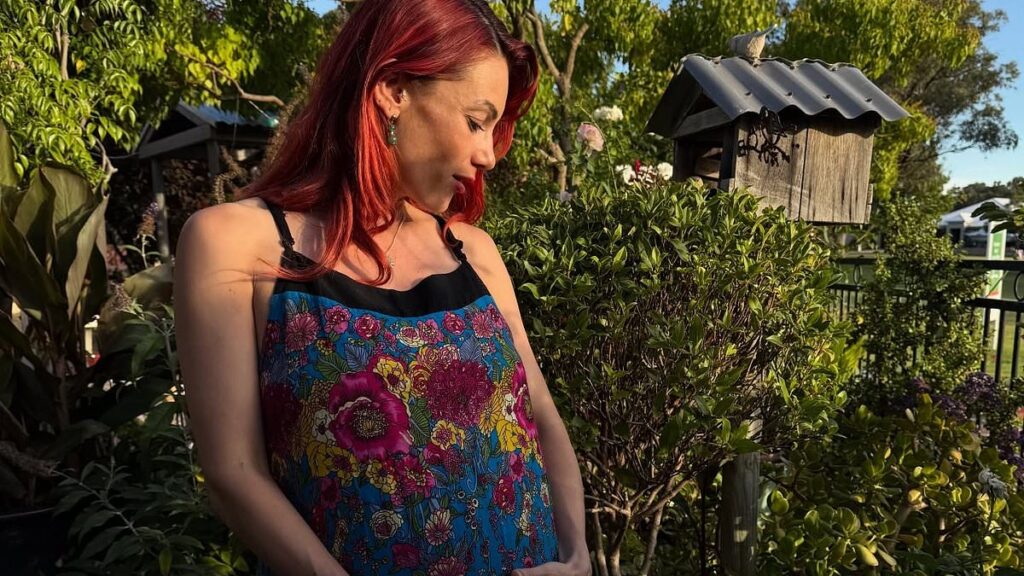 Wearing a satchel that said ‘mum to be’, Dianne stood beside her proud parents Rina and Mark as the house was beautifully decorated behind them.