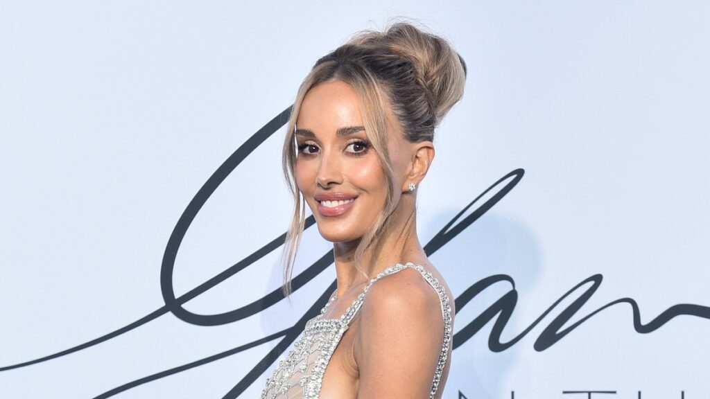 Donning a semi-sheer nude gown that sat close to her figure, Bec’s dress featured netting throughout and was dotted with sparkling rhinestones.
