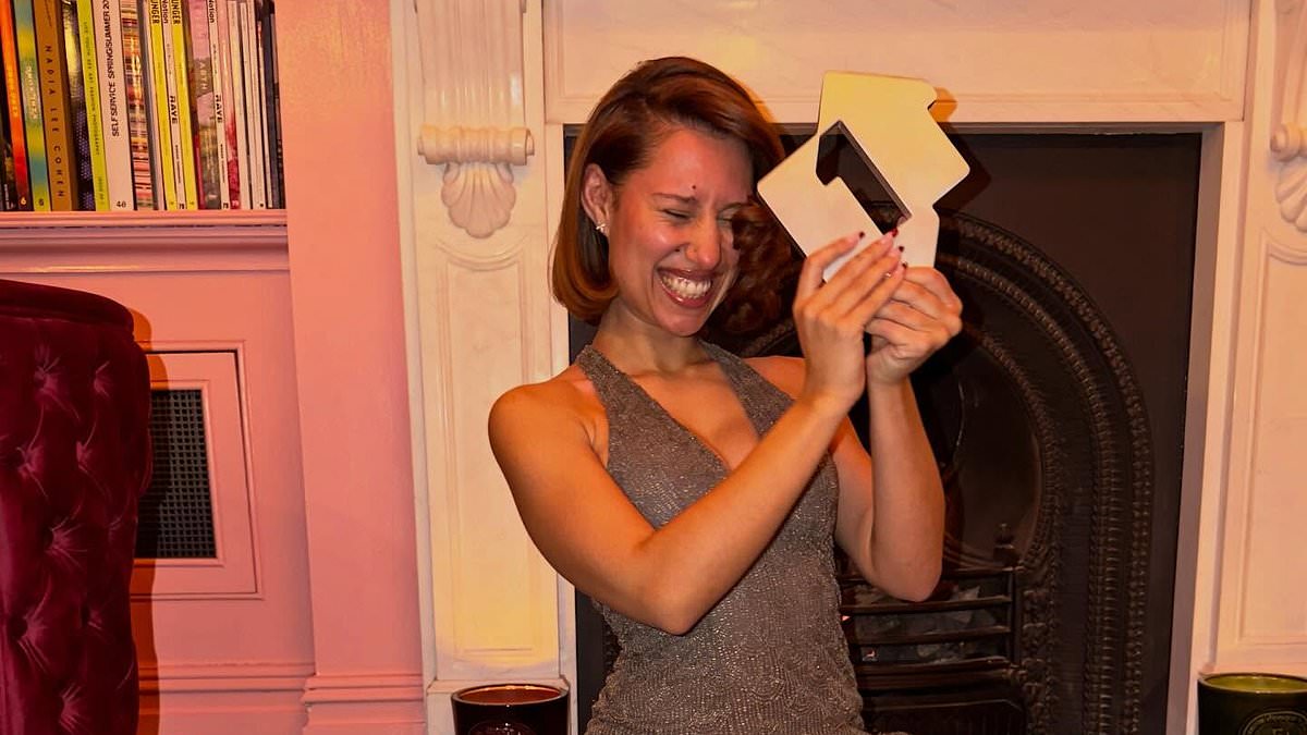 Sharing a slew of pictures to Instagram, the singer beamed as she hugged the award to her chest, while another showed her punching the air and screaming in delight as she held the prize up high.