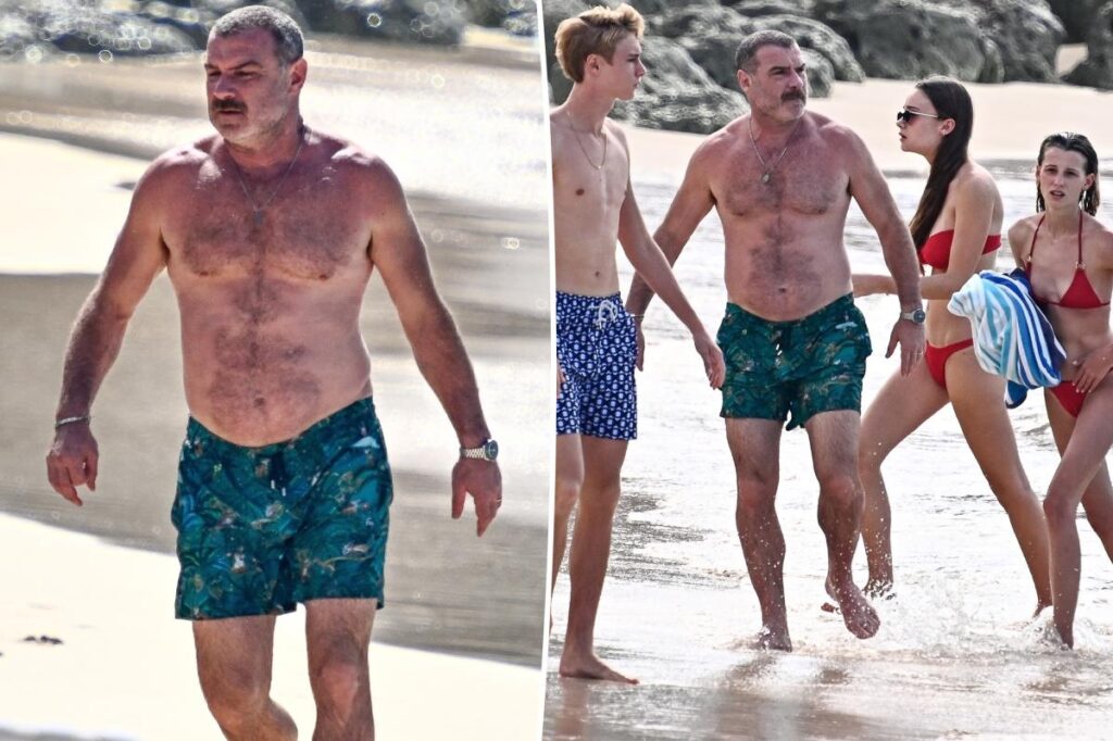 Liev Schreiber flaunted his fit physique during a family getaway to Barbados following his mystery hospitalization.