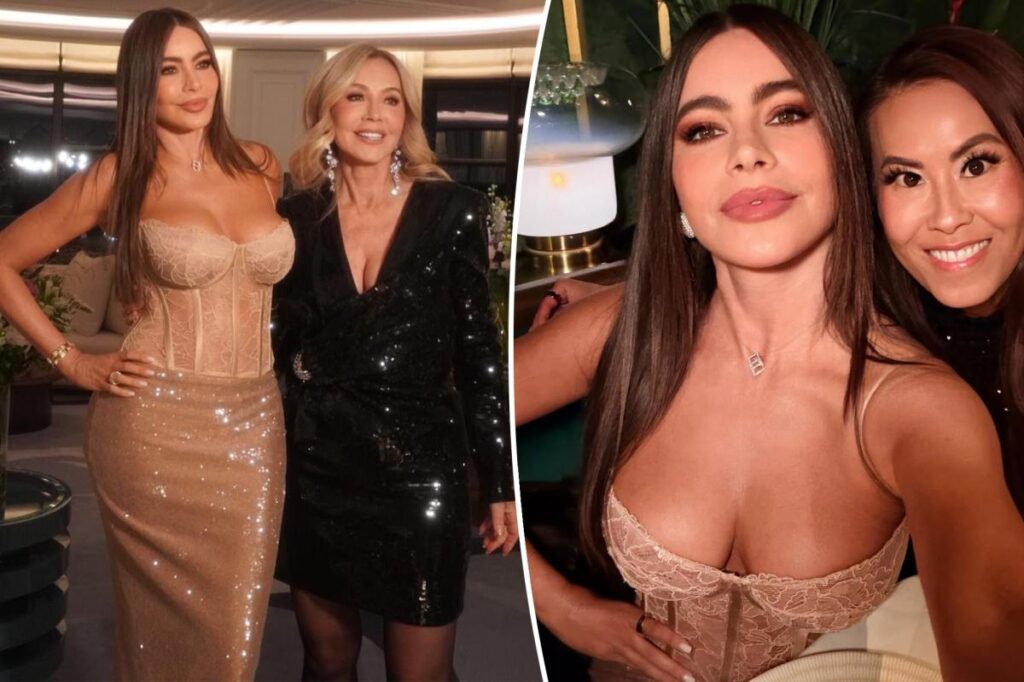 In one image, she sits at a table with the birthday girl and longevity expert, Serena Poon. Another is a selfie with Poon, with Vergara’s decolletage on full display.
