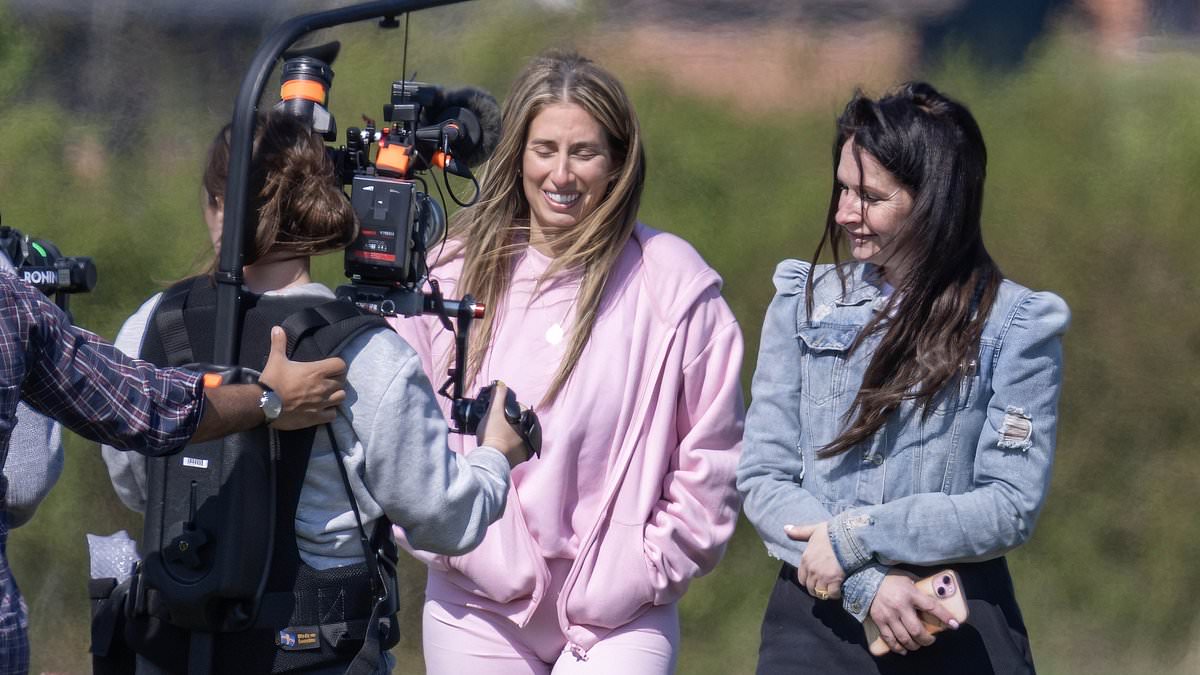 But there was no sign of her husband Joe Swash, 44, during the shoot, instead a smiling Stacey was seen having an animated comversation with her best friend Emma Parr, whilst the cameras rolled.