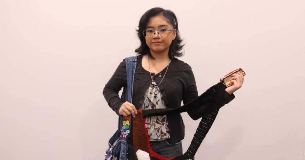 Through upcycling and crafting her own pieces from scratch, she challenges the fast-fashion culture.