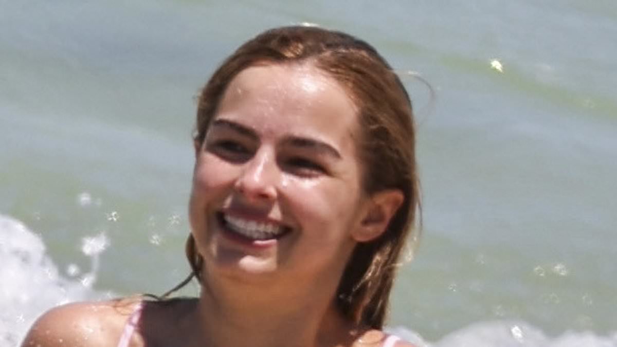 The American pop star and TikToksensation, 25, was spotted cooling off in the ocean at Cottesloe Beach, where she showed off her toned physique in a pink G-string bikini