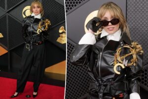 She paired her bold outfit with pointy-toe black stilettos and accessorized with big hoop earrings. The “Euphoria” star styled her blond hair stick-straight and expertly hit a few poses as cameras captured it all.