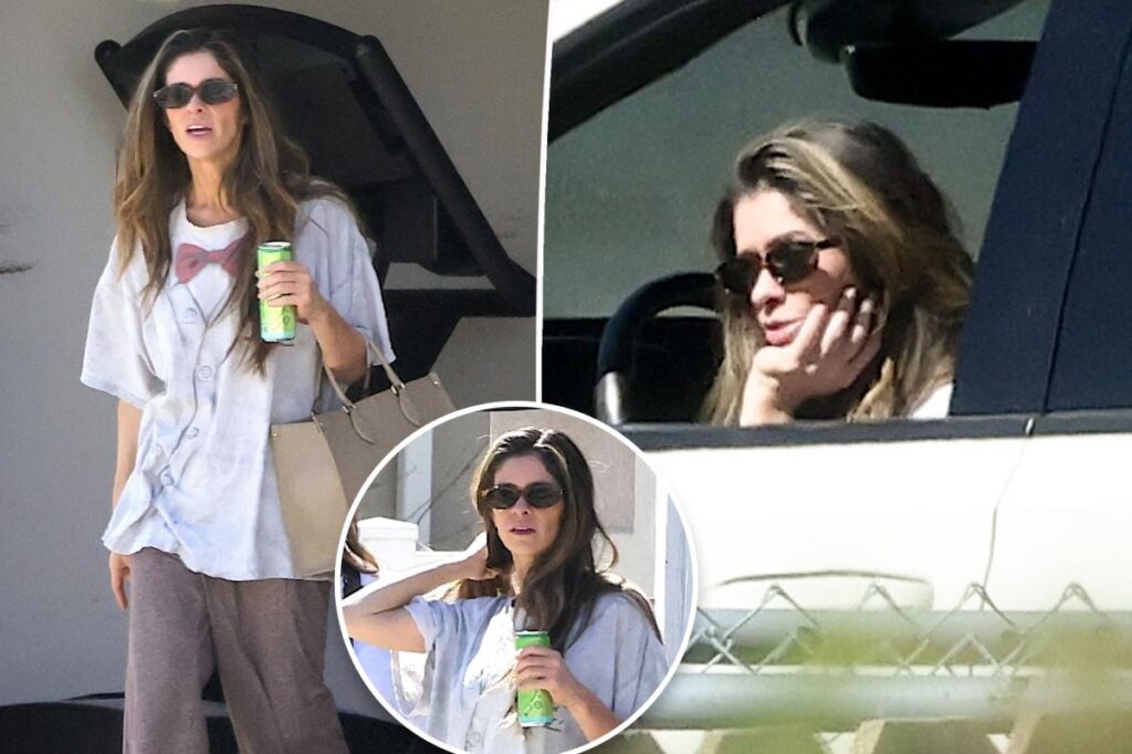 In other pics, she is walking in one of her pal’s driveways talking very expressively and raised her arms.