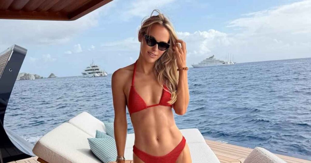 Wozniacki, 35, showed off her figure in a sizzling hot swimsuit while enjoying a yacht outing with husband David Lee in St. Barths. In a carousel of photos, which she shared via Instagram on Thursday, March 5, Wozniacki was seen modeling a fiery set featuring a textured red triangle cup top finished with halter straps. She styled the itty-bitty piece with low-rise bottoms that hugged her hips.