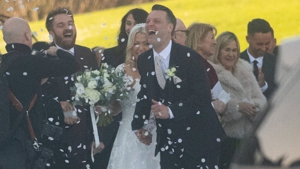 Lily, 31, looked stunning in a traditional white lace bridal gown with a distinctive overlay as she exited the venue arm-in-arm with her new husband, the son of late Scottish football legend Gordon McQueen.