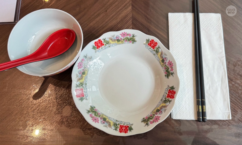 The tables were also set with retro Chinese tableware — something you might see at a grandparent’s house.