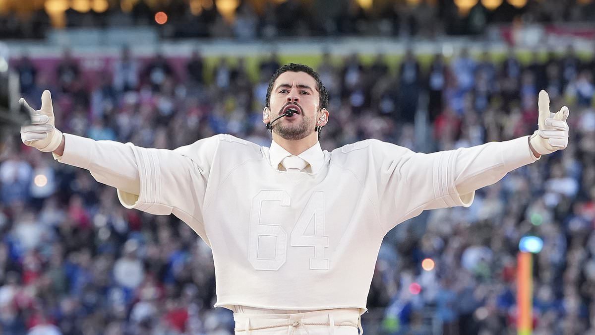 Bad Bunny made history on Sunday night as the first male solo Latin artist to perform the Super Bowl halftime show, as well as the first to perform their set entirely in Spanish.