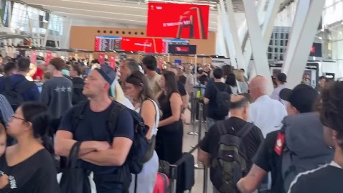 Kylie also shared images of a lengthy lineup of passengers outside the terminal.